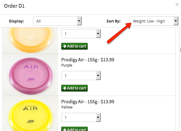 When ordering discs on our site, you can find discs by specific weights using our advanced search, or sort by weight within each disc model.